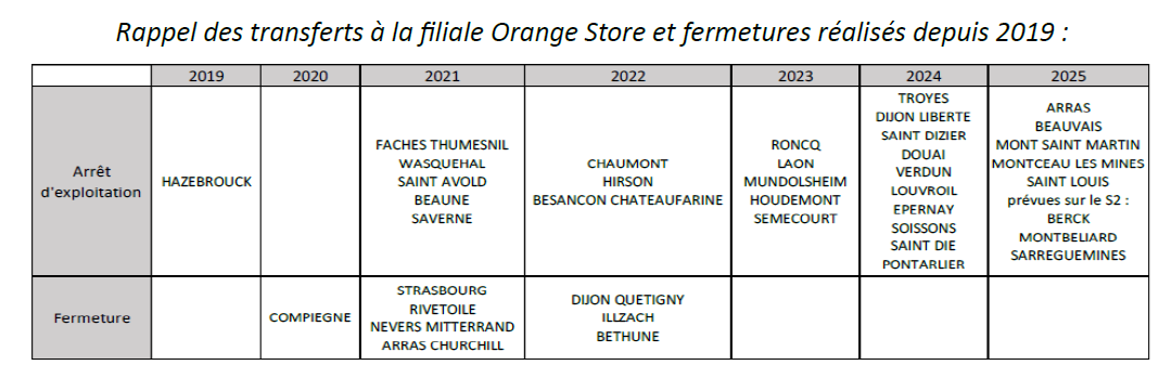 Transfert à la filiale Orange Store des boutique de :